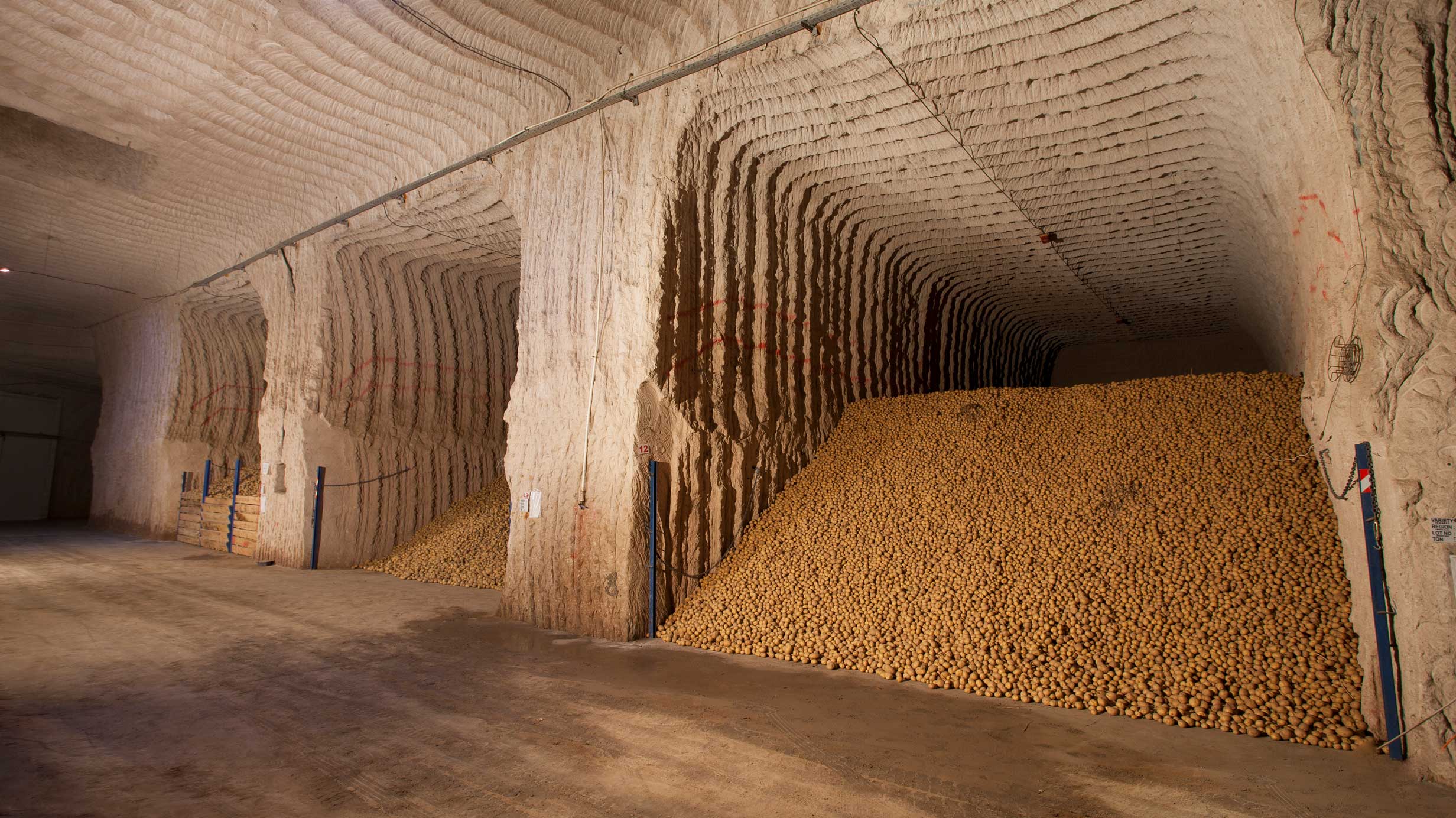 Yer altı depolarında sıcaklık, doğal kayaç yapısının özelliği nedeni ile yer üstü depolarına kıyasla daha stabildir. Sıcaklık yıl boyunca, kurak geçen yazlarda veya en sert kışlarda bile, 8-10 C derece arasındadır. Bu özelliği nedeni ile iklimlendirme sistemlerinde aşırı enerji harcanmaz. İklimlendirme sistemleri, stabil sıcaklıktaki beklenmeyen değişimlere karşı bir güvenlik önlemi olarak bulundurulur. Yani, yer altı depoları enerji verimliliği sağlar, karbon ayak izini azaltır. Bir diğer yandan, patatesin saklandığı ısı rejimi, patatesin kullanım amacına göre değişiklik gösterebilir. Bu hedef sıcaklık değerlerini yakalamak ve sabitlemek için modern iklimlendirme sistemleri kullanırız. Bu güne kadar biriktirdiğimiz tecrübelerimiz ile depo firelerini %7’in altına indirdik. Depolamada dünya şampiyonuyuz!